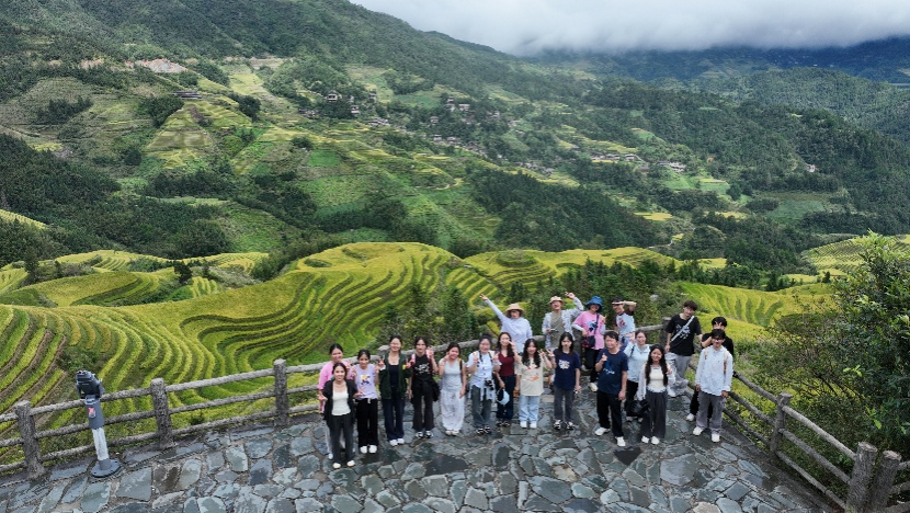 9月25日上午,全体师生走进龙胜各族自治县的龙脊梯田,在层层叠叠的田埂间开启自然与人文交融的地理探索。沿田埂攀爬的过程中,壮族、瑶族留下的农耕印记随处可见,依山而建的吊脚楼与梯田相映成趣。通过实地观察,同学们深入探讨了龙脊梯田的形成条件:该地处亚热带季风气候区,年均降雨量达1600~1700毫米,适配水稻喜温喜湿的生长需求,为梯田农业种植提供充足且稳定的灌溉水源。同时中山地貌的高山深谷间,粘性强、保水性好的土壤,锁住水分,共同构成了梯田生长的自然基底。师生们分析旅游开发为梯田带来的机遇,也关注过度开发可能对土壤、水源造成的影响。同学们深刻体会到龙脊梯田的价值不仅在于壮观景象,更在于其中深藏的人与自然和谐共生的智慧。