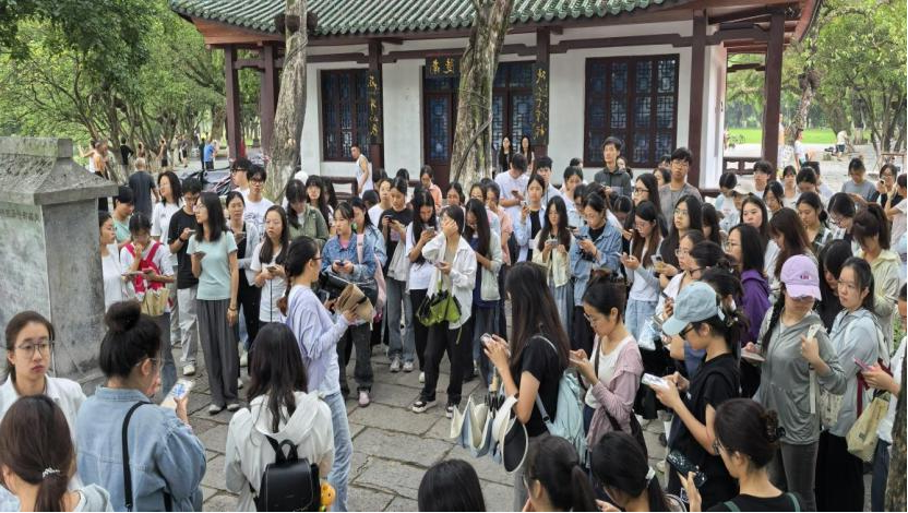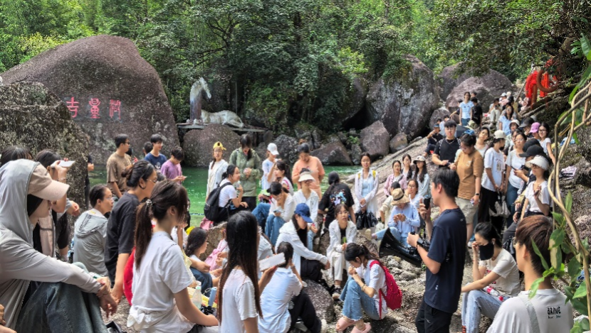 从地上喀斯特到地下奇观,探索脚步从未停歇。9月29日上午,师生共同进入冠岩景区,溶洞里的地下暗河潺潺流淌,石钟乳、石笋、石帘、石柱等景观形态各异,在老师的讲解中,同学们读懂了碳酸钙与水历经千万年雕琢出的奇观。