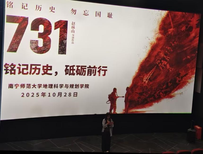 此次观影不仅是一堂生动而深刻的历史教育课,更是一次触及灵魂的思想洗礼。大家纷纷表示,要将影片带来的深刻震撼与历史启迪,转化为砥砺前行的强大动力,在今后的学习、工作与生活中,不断锤炼党性修养、强化宗旨意识、提升能力本领,以更加饱满的热情和扎实的行动传承红色基因,努力成长为可堪大用、能担重任的时代新人,为实现中华民族伟大复兴的中国梦贡献属于地理人的青春、智慧和力量。