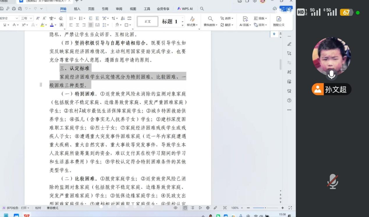 随后,孙文超老师开展专题培训。他围绕家庭经济困难员工认定的官方通知及配套附件进行详细解读,针对文件重点、易混淆条款与实操难点逐一拆解,并结合过往案例举例说明,帮助参会人员快速吃透认定标准、掌握操作细节。培训尾声,孙老师耐心回应各年级资助委员的疑问,解答流程衔接、材料审核等方面的困惑,确保每位参会人员都能明确职责、熟练掌握工作方法。