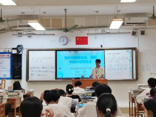 (实习老师梁骅开展“保护远视储备量,预防和减少近视发生”主题班会)