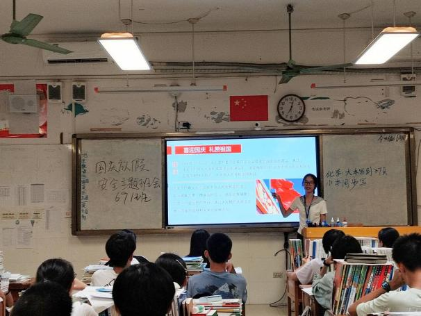 (实习老师王兰丰开展“国庆放假安全”主题班会)