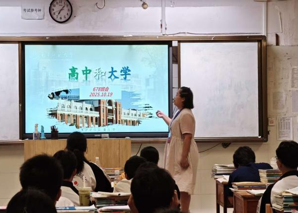 (实习老师胡佳琦开展“高中和大学”主题班会)