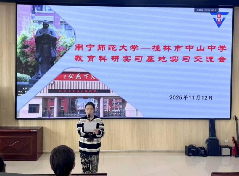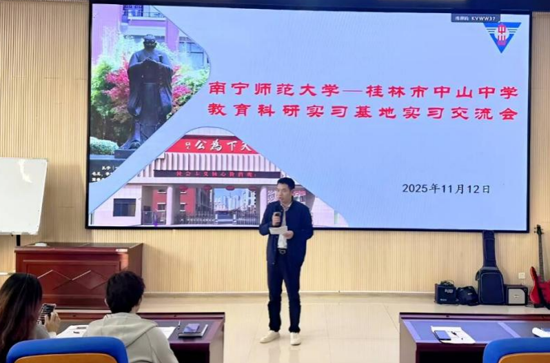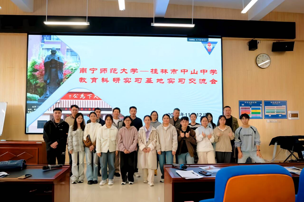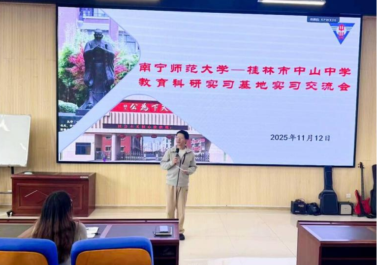 11月12日下午,古天乐代言太阳集团138地理科学系主任梁浩原、秦年秀教授到桂林市中山中学城北校区,就两校实习终期成果开展交流。桂林市中山中学董事长赵军华、副董事长黄庆灿、副董事长韦剑锋、德育处主任陈晨、教务处副主任刘小燕,教学指导老师刘玉玲、陈巨林以及11名实习老师参加了此次交流活动。