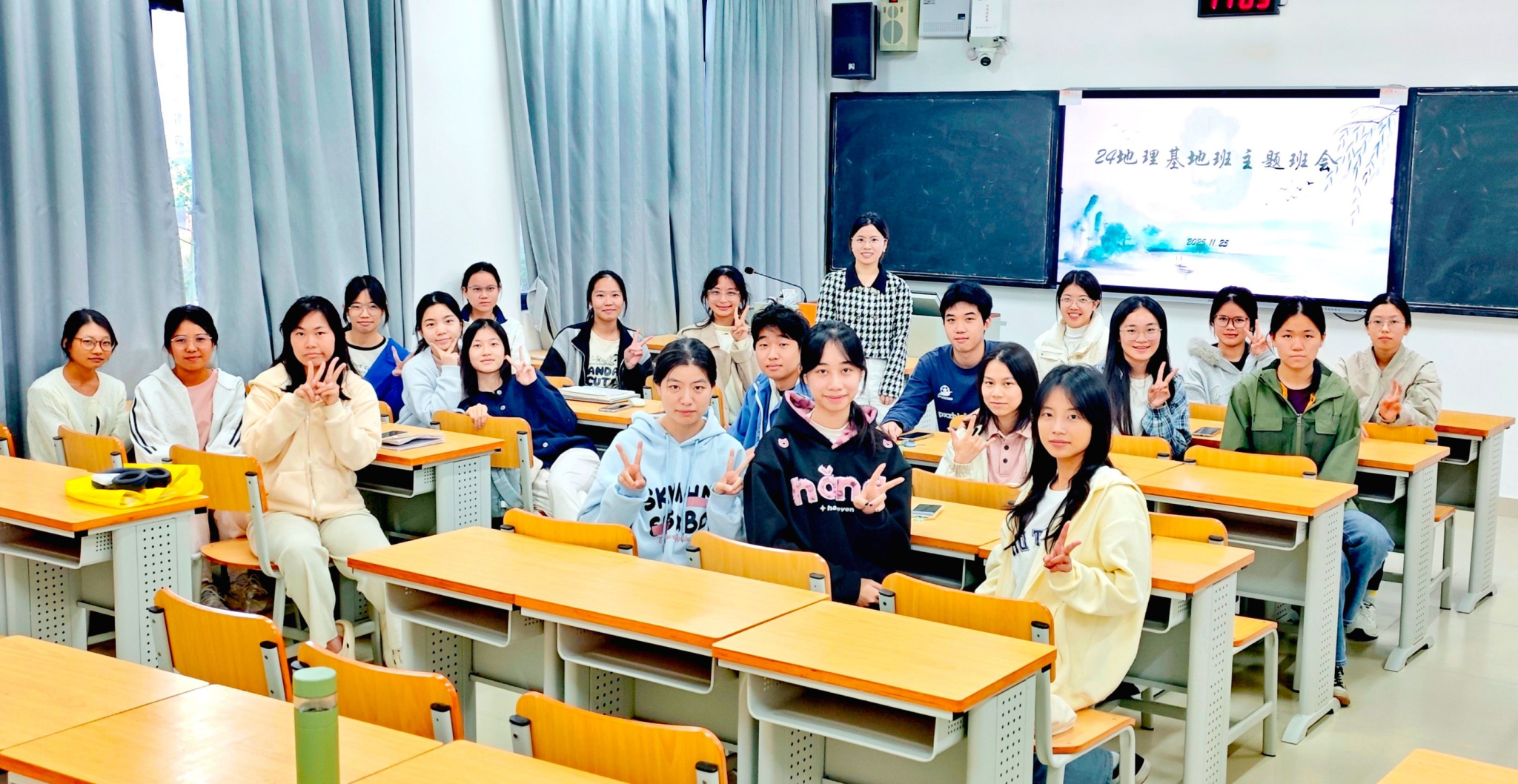 会后,两位同学在罗蜜老师主持的主题班会上,分享了参会收获与思考。她们结合朱有勇院士“把论文写在大地上”的典型案例,生动讲述了科技服务脱贫攻坚的实践路径,并交流了多位院士报告中的创新思维与方法,有效激发了全班同学投身地理科学研究的兴趣与热情。