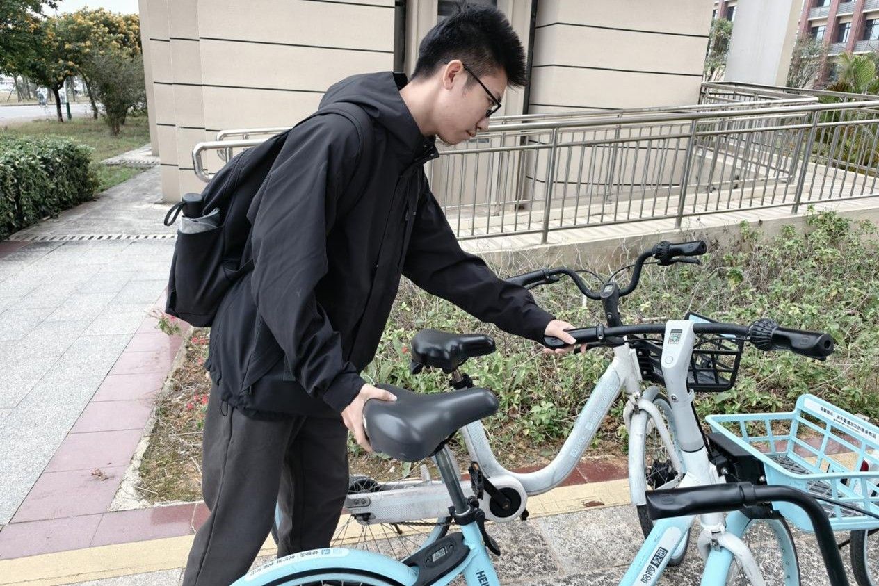 (同学们摆放共享单车)