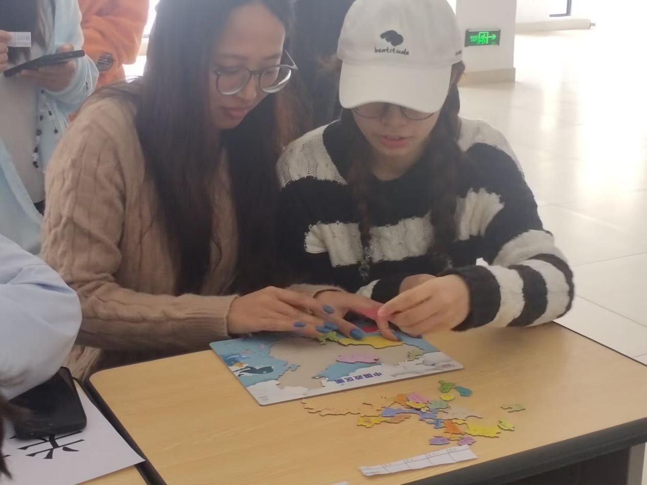 此次活动以“普及地理知识、强化团队协作”为宗旨,共设置三个关卡,分别为地理拼图、海龟汤和地理记忆探险家。三个关卡的设计紧密围绕地质地貌、疆域人文、气候水文等核心知识点,兼具知识性与趣味性。例如,在地理记忆探险家关卡中,需要两支队伍同时在30秒内观察并记忆四张照片中涉及的地理元素,涵盖地貌类型、建筑风格、景观颜色、人文活动等信息,以此来回答相关地理问题。活动现场,各队伍分工明确、配合默契,有的快速定位地图坐标,有的共同探讨地貌成因,现场气氛紧张热烈,参赛人员携手穿梭于三大主题关卡,于竞技与协作的过程中领略地理学科的独特魅力。