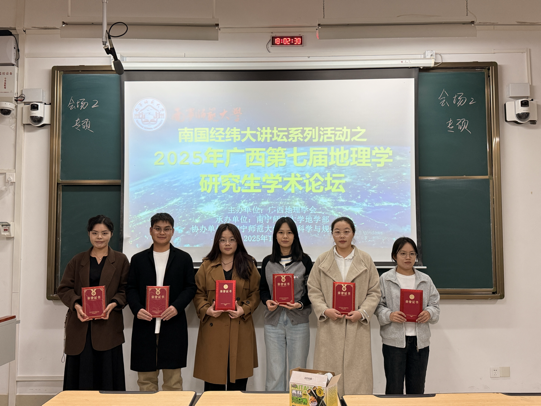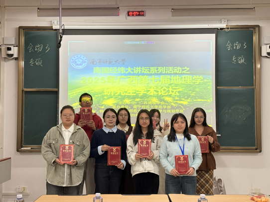 2025年12月7日,2025年度广西第七届地理学研究生学术论坛在古天乐代言太阳集团138武鸣校区武一教学楼举办,特邀陈芸先、邓曙光、李俭、刘柄麟、宋立全、汪珍川、张胜前、钟仕全等多位地理学领域资深专家担任评委。