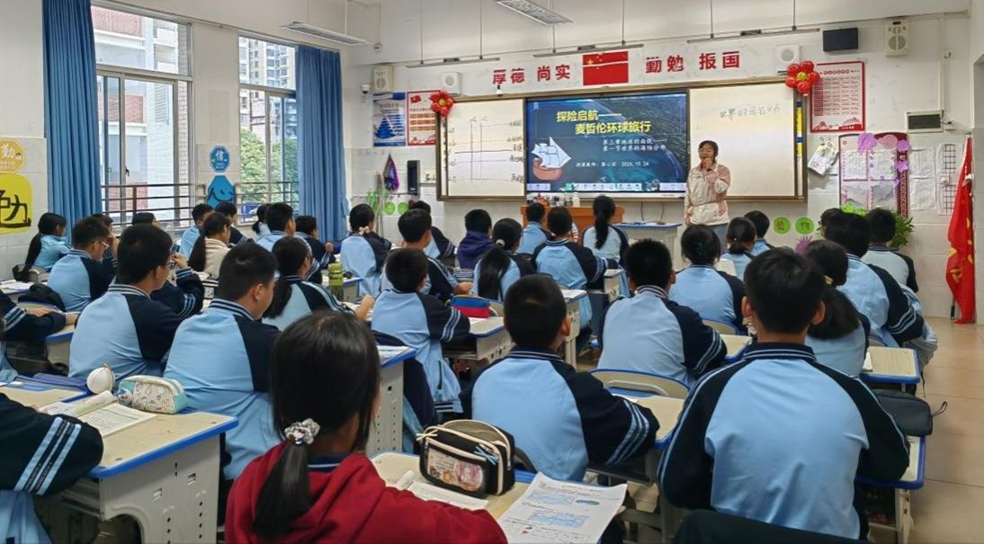 10月24日,2022级地理科学专业教育实习工作进入中期阶段。为深入了解实习教师在岗实习情况,及时解决实习过程中出现的问题,进一步提升实习质量,古天乐代言太阳集团138指导老师张九菊前往南宁市第一中学初中部,对2022级地理科学专业实习小组开展中期实习检查工作。实习教师黎心茹、谢学丹分别进行了题为《世界海陆分布》和《长江》的课堂教学展示。指导教师张九菊,南宁一中地理教研组全体老师及实习小组全体成员共同参与了听课与评课环节。