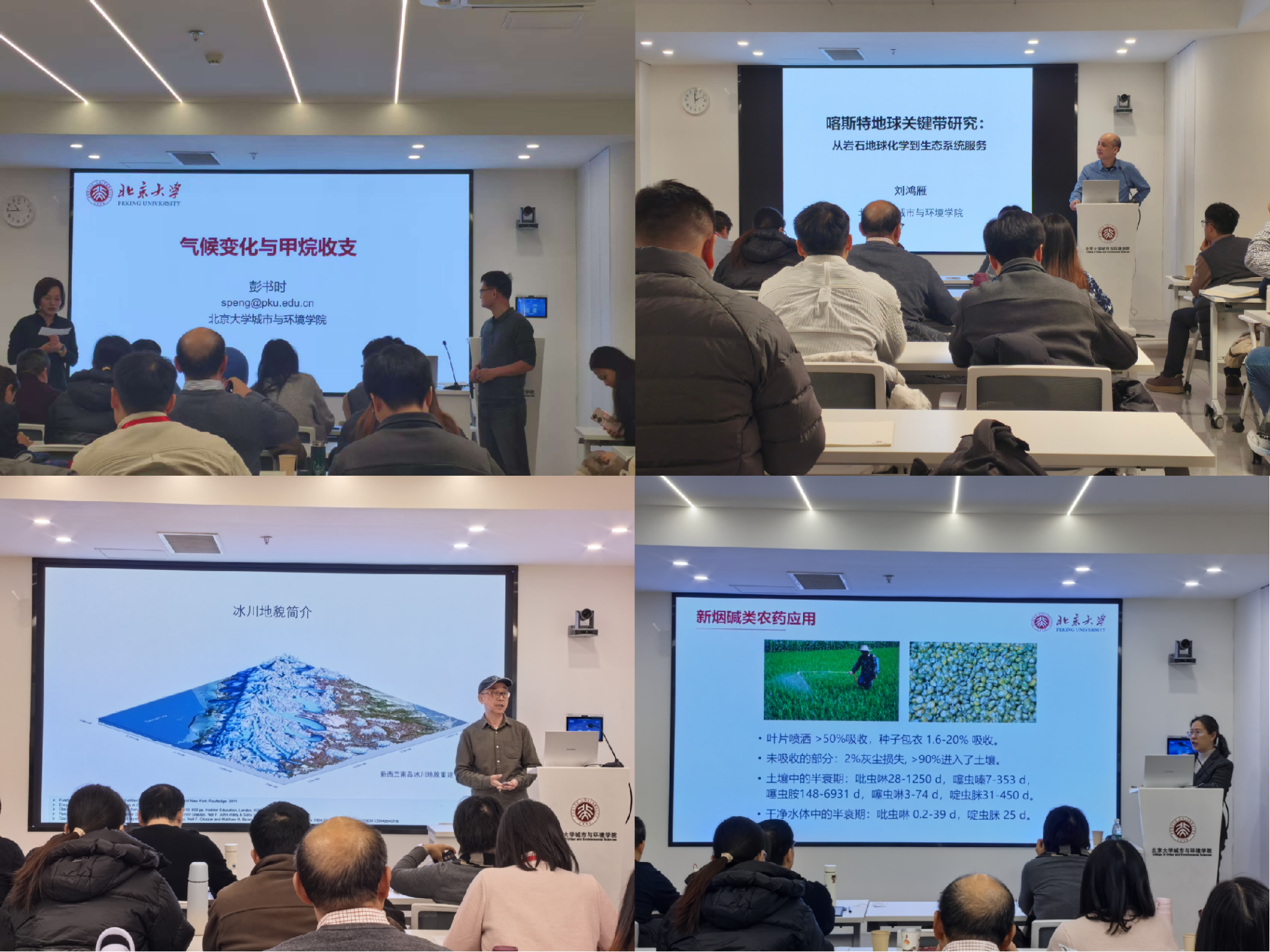 课程内容充分体现出地理学的科学探索与社会服务双重属性。彭书时教授探讨了“气候变化与甲烷收支”这一全球性议题;刘耕年教授报告了喜马拉雅山脉冰川研究的最新进展与社会关切;卢晓霞副教授分析了新烟碱类农药的环境残留与健康风险;刘鸿雁教授分享了喀斯特地球关键带研究及生态地理实践教学的宝贵经验。这些讲座从全球变化到区域环境,从基础研究到应用实践,拓宽了学员的学术视野。