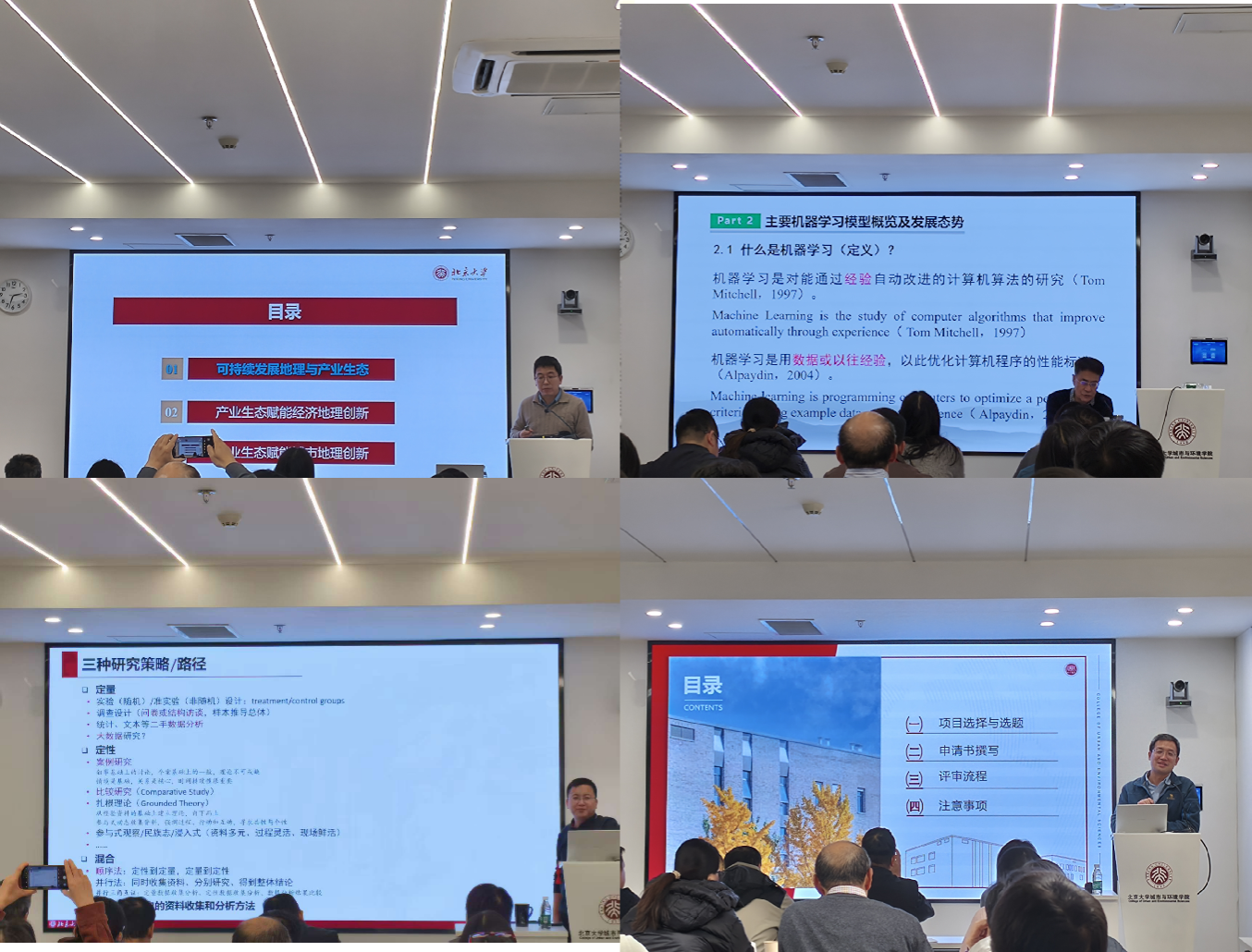贺灿飞教授在研修班首讲中,以“北京大学地理学科发展70年探索”为题,系统回顾了学科的发展历程,阐述了该学科在学术体系、研究方向、人才培养等方面的探索与实践,为理解大地理学演进逻辑提供了思想启迪。紧随其后,李双成教授深入解读了AI时代的机器学习模型及其地学应用,展现了学科与技术融合的前沿动态。研修课程还紧密围绕地理学教师的核心关切,设置了多个针对性极强的专题:王志恒教授、刘刚教授分别就基金申报与写作分享了宝贵经验;刘涛研究员则系统讲授了学术论文写作的方法与规范。三位专家的分享相互补充、层层深入,全方位助力学员提升科研系统思维与拓宽创新视角,现场交流热烈,反响深刻。